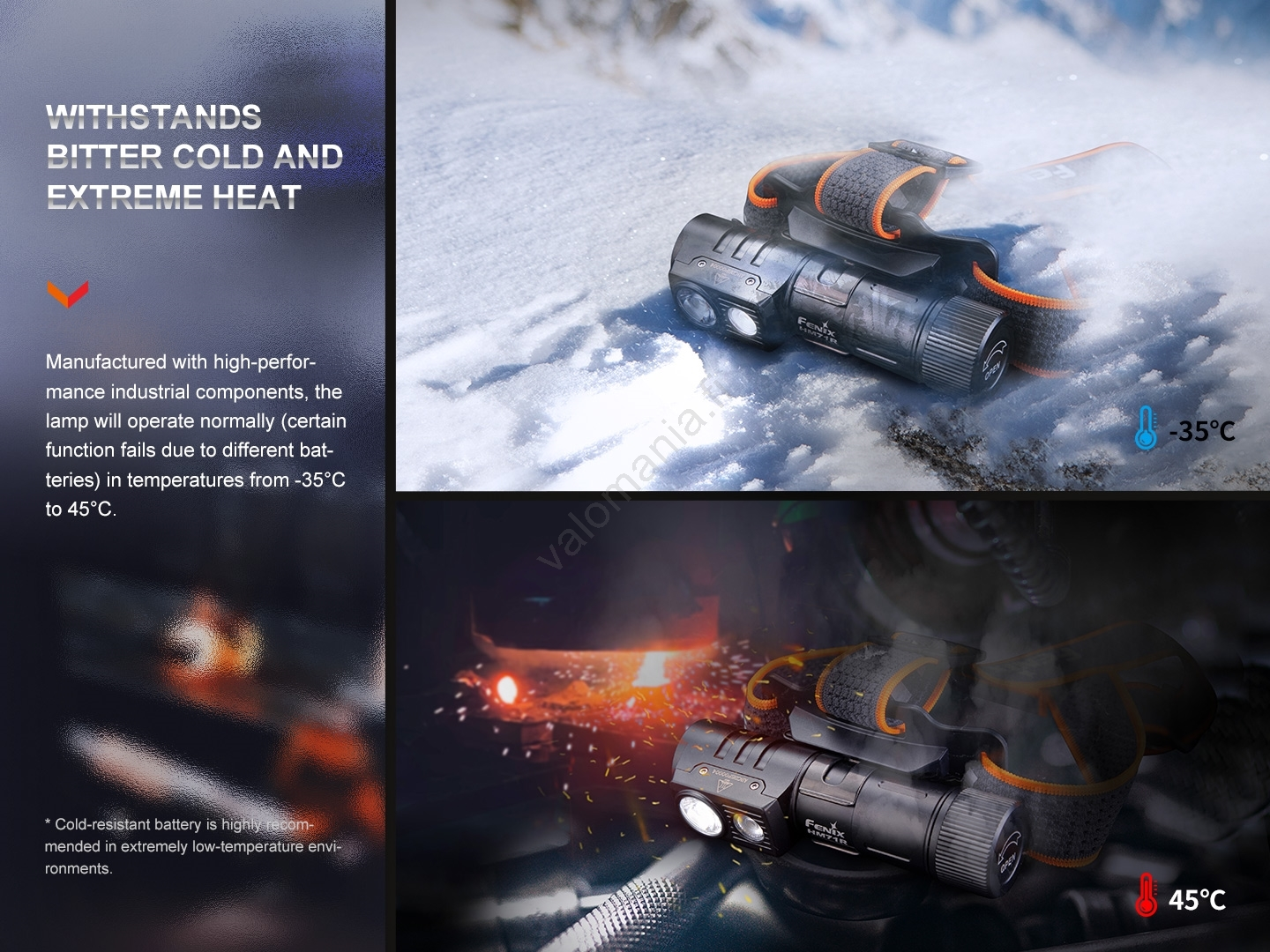- Fenix HM71R on tehokas ladattava otsalamppu, joka tarjoaa jopa 2700 lumenia (ANSI).
