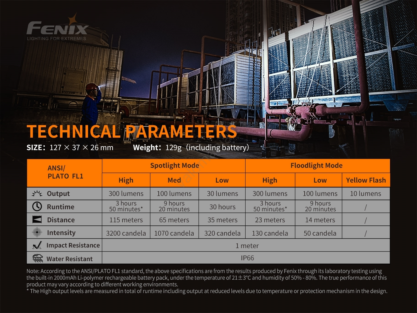 Fenix WT16R – LED Ladattava Taskulamppu 2xLED/USB IP66 300 Lm 30 Tuntia