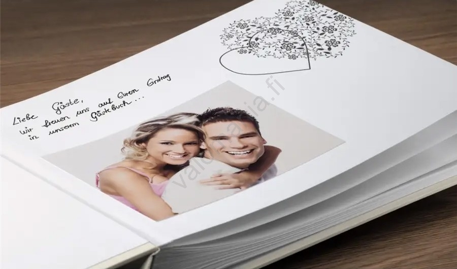 - Albumi ja vieraskirja yhdessä, jossa on runsaasti tilaa valokuvien, onnittelukorttien, tervehdysten jne. kiinnittämiseen.