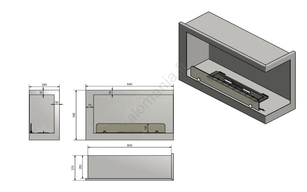 - Biopolttoainetakka on varustettu suojalasilla, jonka paksuus on 4 mm ja korkeus 10 cm (valmistettu karkaistusta lasista).