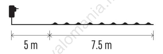 - Valaistun kaapelin pituus: 7,5 m.