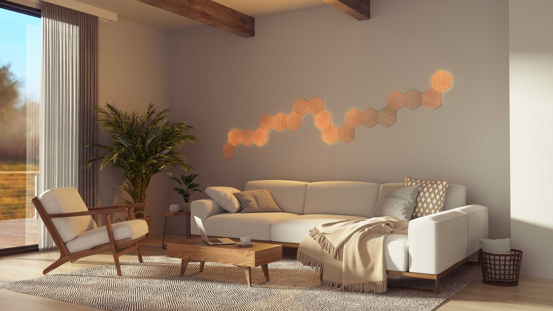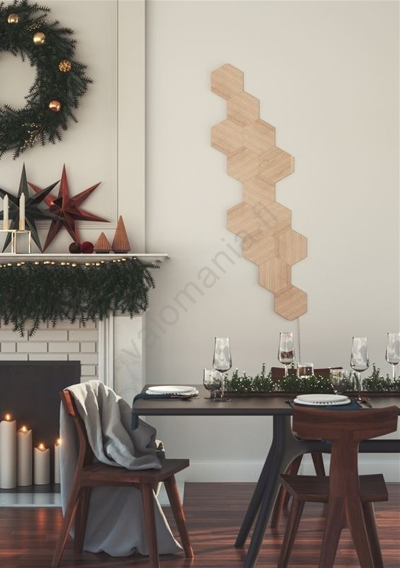 - Sisältää: 13x kuusikulmioita, 13x asennuslevyä, 14x kaksipuolista liimanauhaa, 14x liitäntäelementtejä paneelien ja ohjaimien liittämiseen, 1x ohjainta ja 1x virtalähdettä.