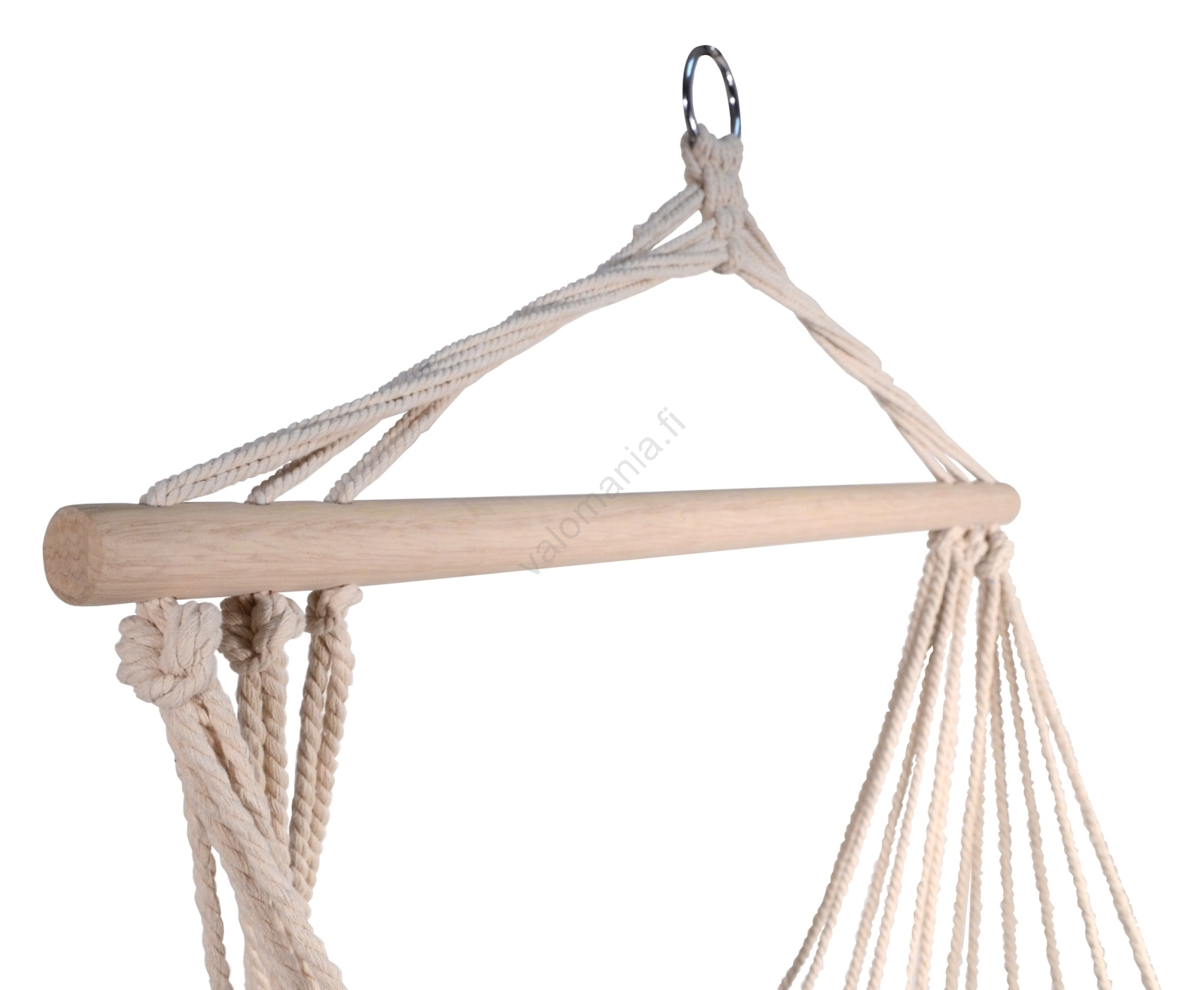 - Ulkona istumiseen tarkoitettu riippumatto, joka on kiinnitetty ripustusrenkaalla.