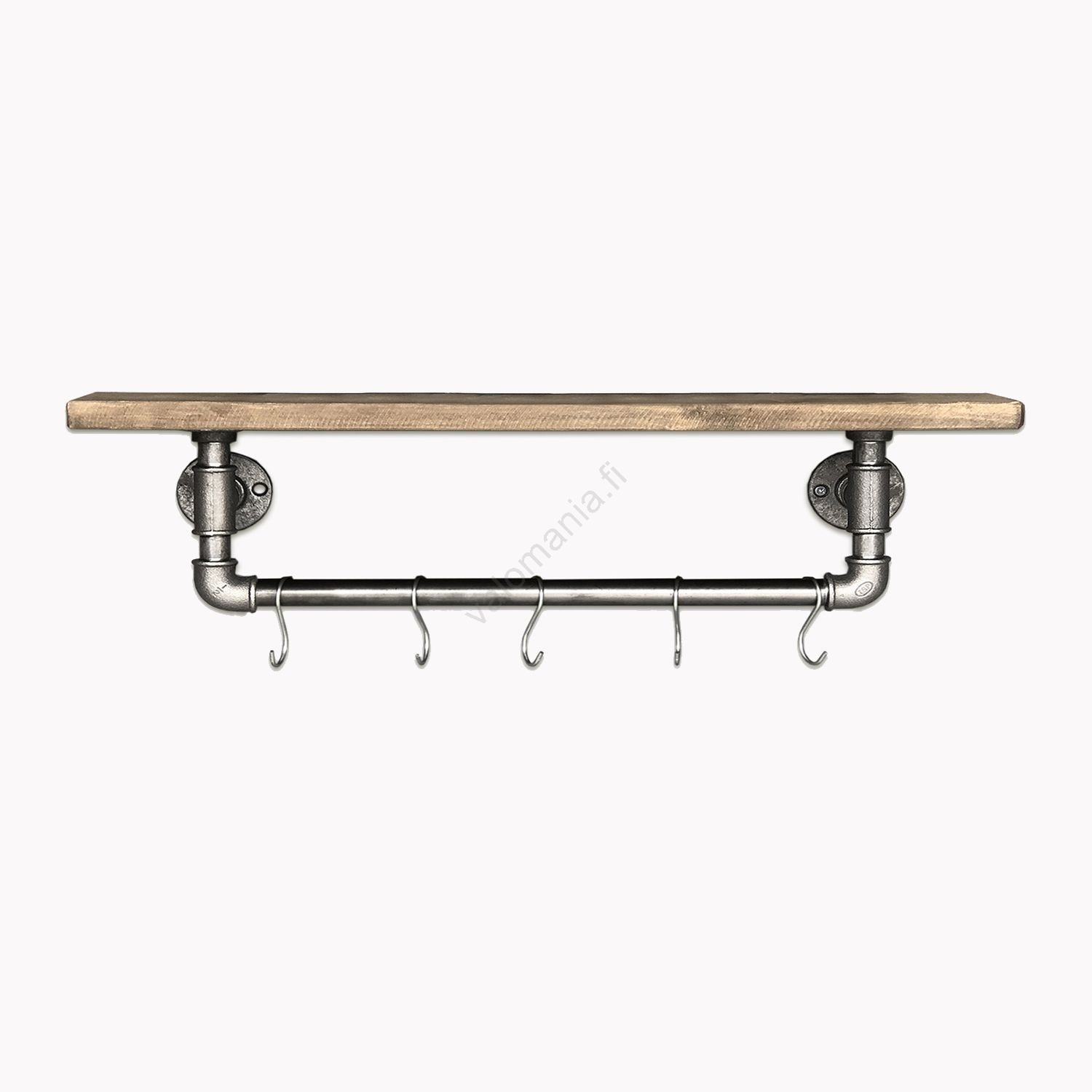 - Kahden seinähyllyn sarja, joka on valmistettu kuusipuusta teollisessa tyylissä.