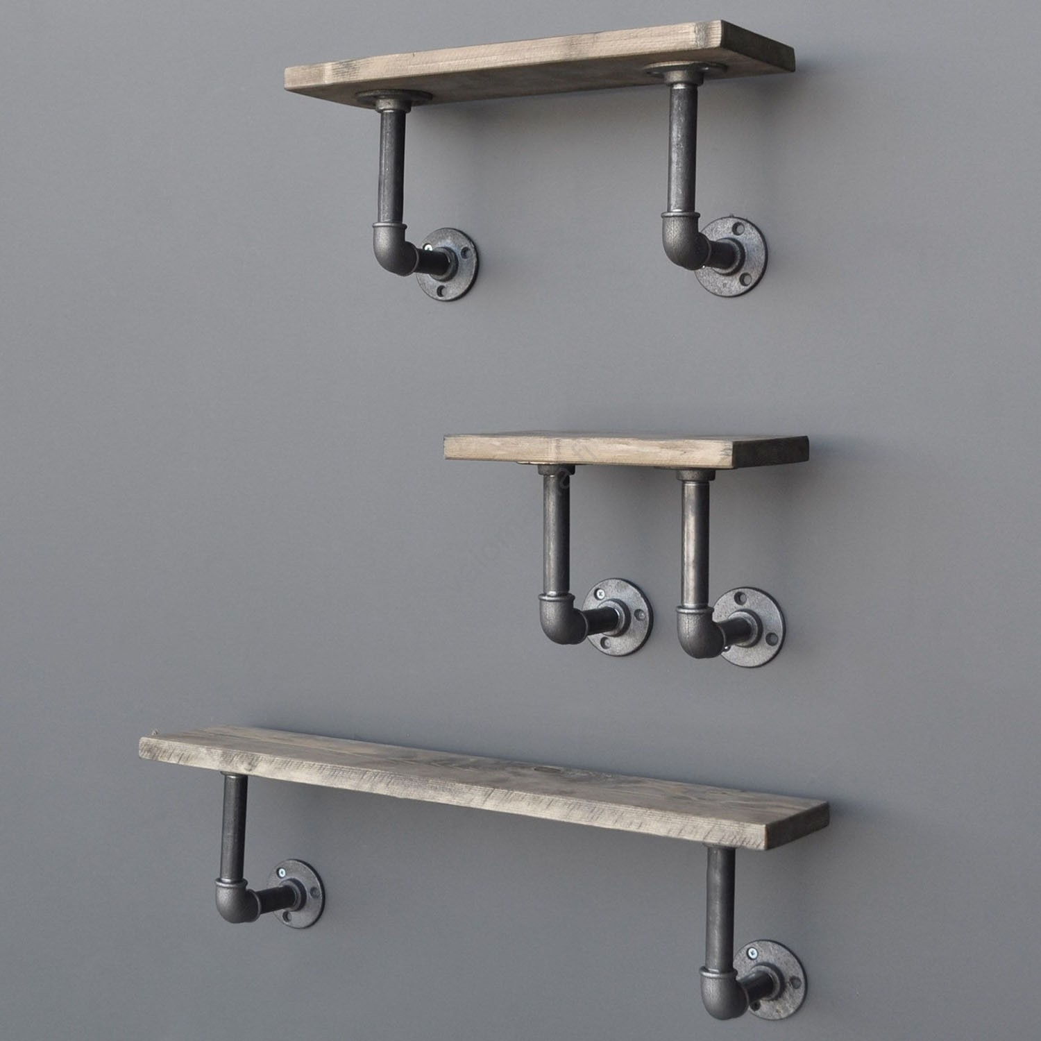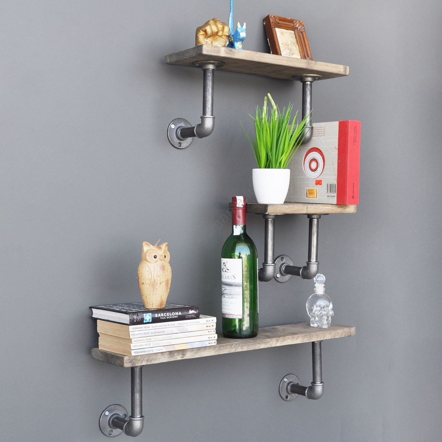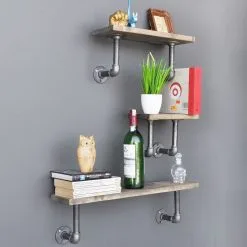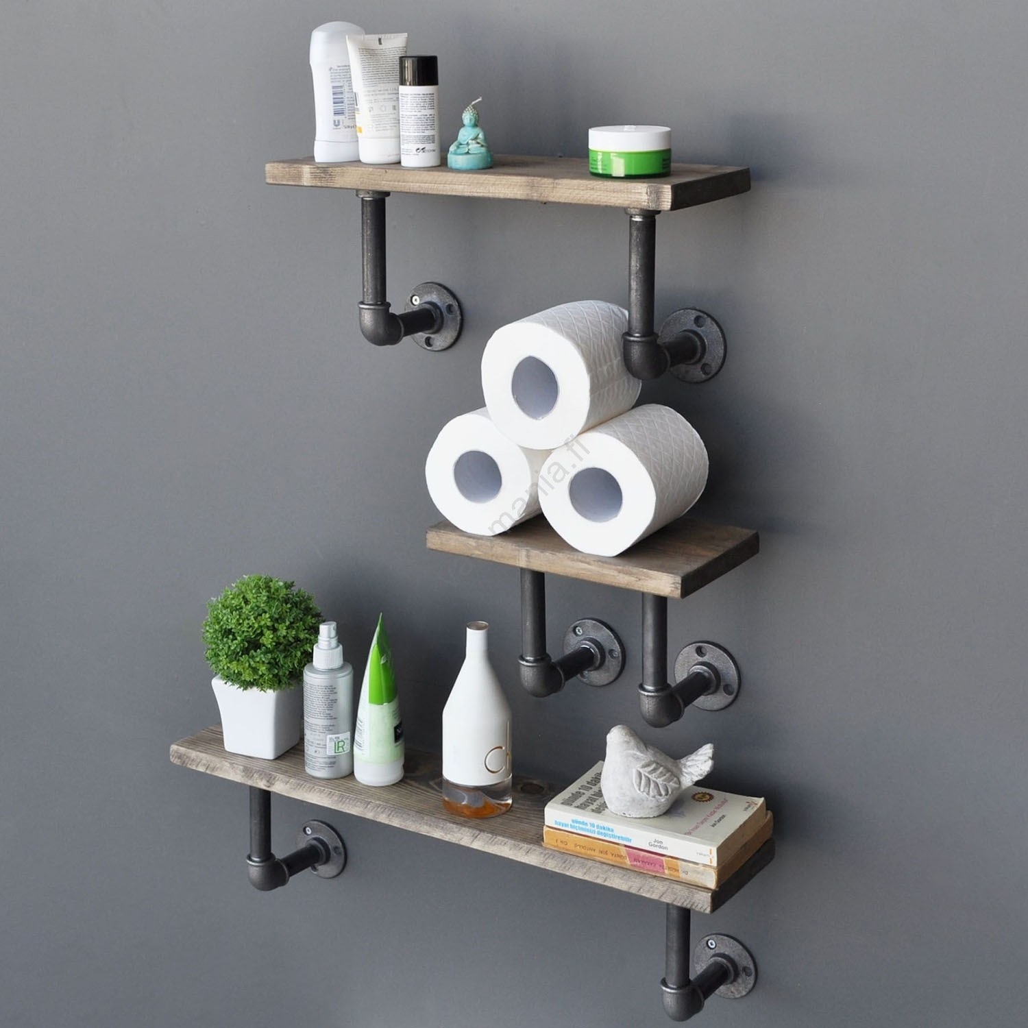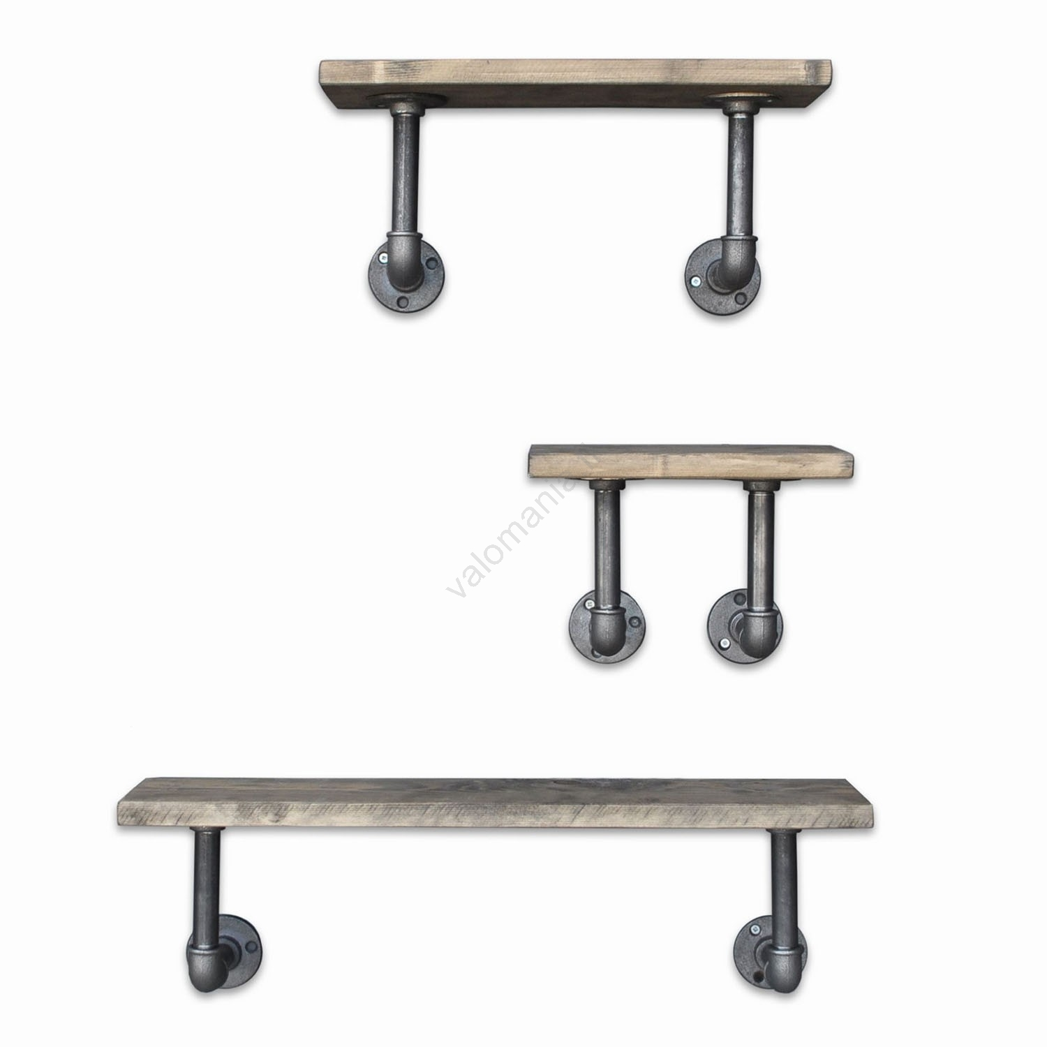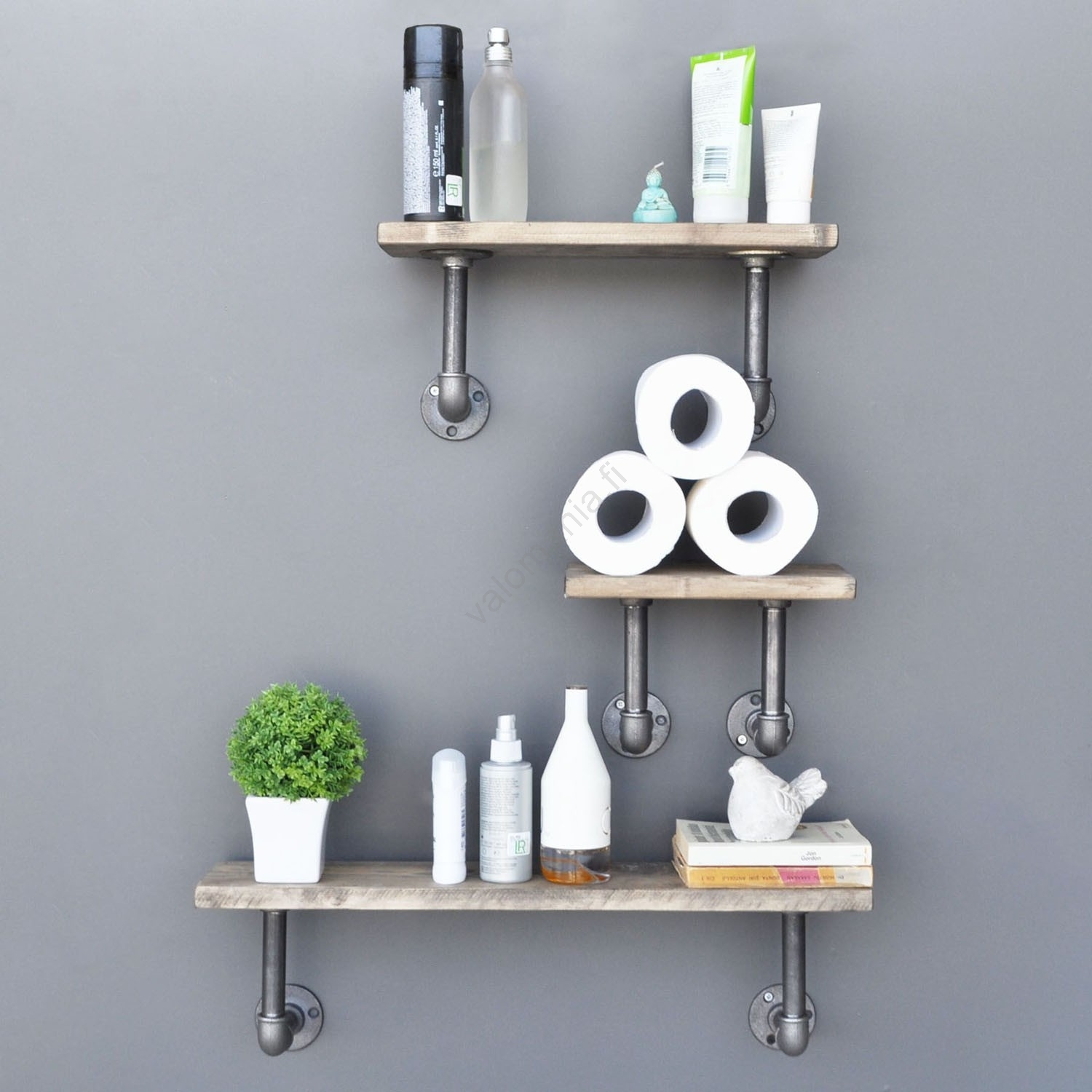 - Kolmen seinähyllyn sarja, joka on valmistettu kuusipuusta teollisessa tyylissä.