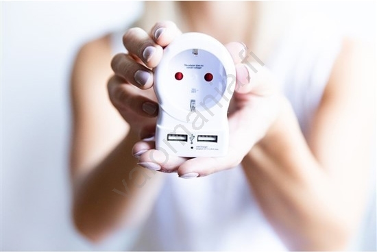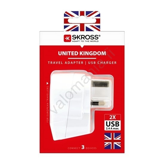 Solight PA28USB – Matkasovitin UK 230V + 2x USB -portti