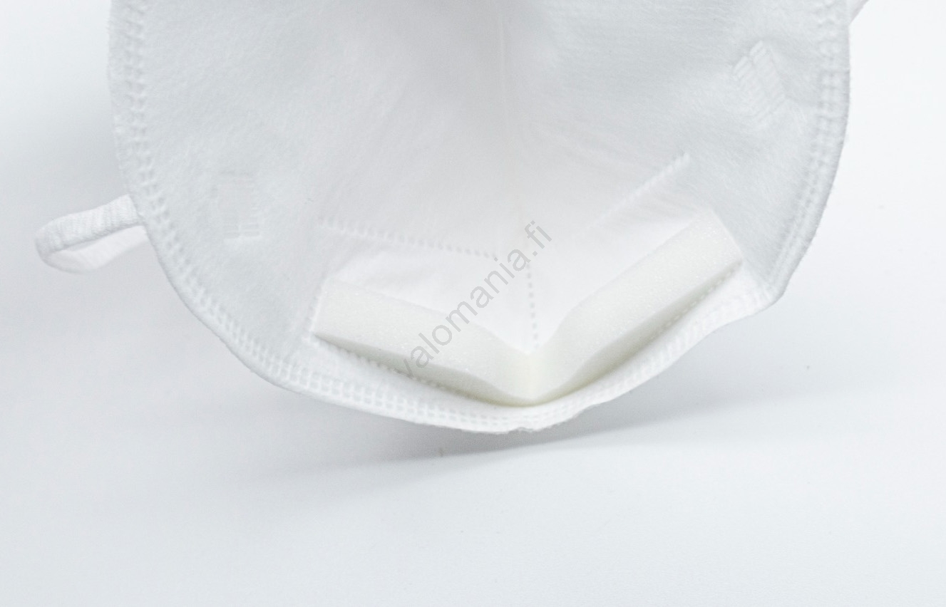 - FFP3-maski, joka koostuu kuitukangaskerroksista, joissa on sähköstaattinen puuvillasuodatin, nenänpidin ja kuminauhat.