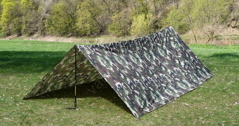 - Kevyt pressu metsäsuojavärityksellä, jonka mitat ovat 3 x 4 m.